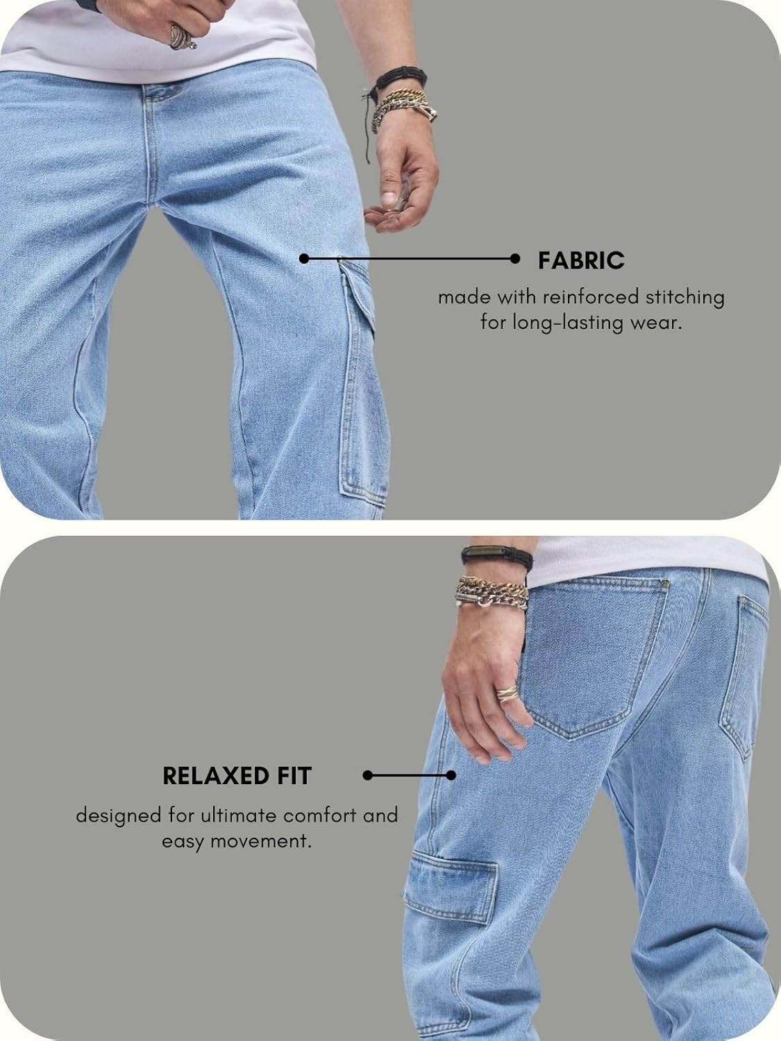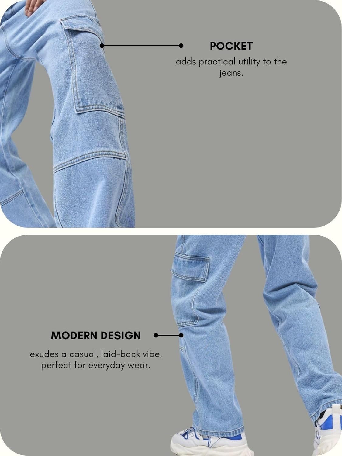 Elevate your casual style with our Cotton Baggy Jeans for Men, featuring a stylish Brown print. Crafted from premium quality cotton, these jeans offer durability and breathability for all-day comfort. Each order includes 1 pair of Baggy Jeans for Men, designed with a Mid Rise length and equipped with 2 Side Flap Pockets and 2 Back Pockets for convenient storage of essentials like keys, mobile phones, and wallets. Perfect for hangouts, picnics, vacations, and even office wear, these cargo jeans for men are suitable for various occasions. Wear them for outings, evenings, or parties, and make a statement wherever you go. Pair these baggy jeans with an oversized t-shirt or baggy hoodie for a trendy look, and complete your ensemble with high ankle shoes for added style. Refer to our image infographics and size charts to find your perfect fit. These straight fit jeans for men are designed to ensure comfort and style. Upgrade your wardrobe with our Baggy Jeans for Men, combining style and functionality effortlessly. Add them to your cart now and experience unmatched comfort and style