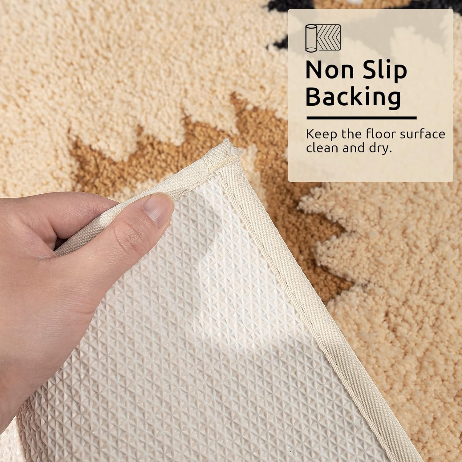 Non-Slip Runner Rug: Long bathroom rug non-slip bottom is made of TPR material that is skid to keep in place well. Place mat on clean and dry floor only, Cause slippage