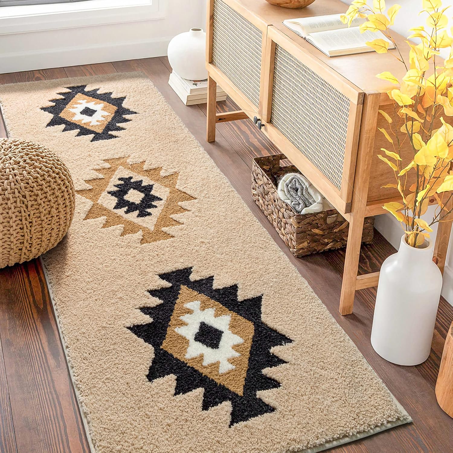 Classic Neutral Rug: The classic mid-century modern geometric pattern gives this non-slip hallway runner rug a minimalist feel that will beautifully decorate the space of your home, add natural vibrancy to your room