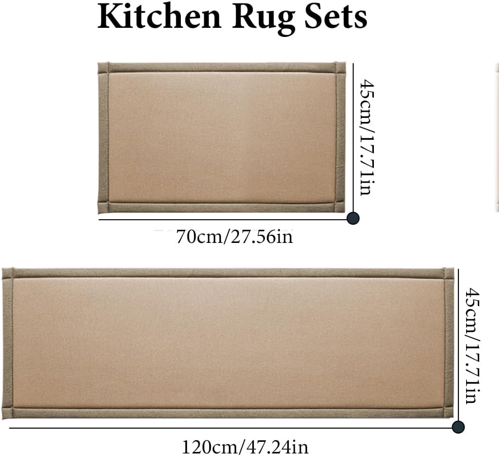 【Anti-Fatigue & Soft】Made of premium sponge Lining materials,the 2.5cm kitchen anti fatigue mat set is cushioned for standing. It provides comfortable support to improve blood circulation helping your feet not feel tired while being in the kitchen.