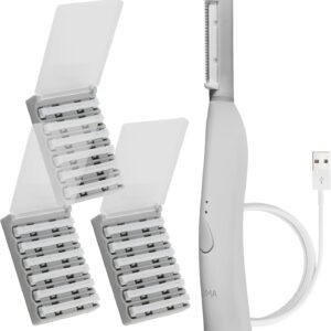 Sonic Dermaplaning Tool for Face – Rechargeable Dermaplane Razor with 6 Refill Dermablades, Facial Hair & Peach Fuzz Remover for Women (White)