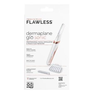 Finishing Touch Flawless Dermaplane Glo Sonic Lighted Facial Exfoliator, Electric Vibrating Dermaplane Razor for Dermaplaning, Facial Hair Removal, 6 Replacement Heads