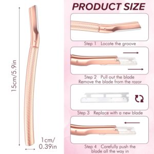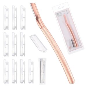 Eyebrow Razor for Women,Face Razors for Women Dermaplaning,Professional Dermaplane Tool with Protective Cap for Peach Fuzz (Rose Gold-10 Blades)