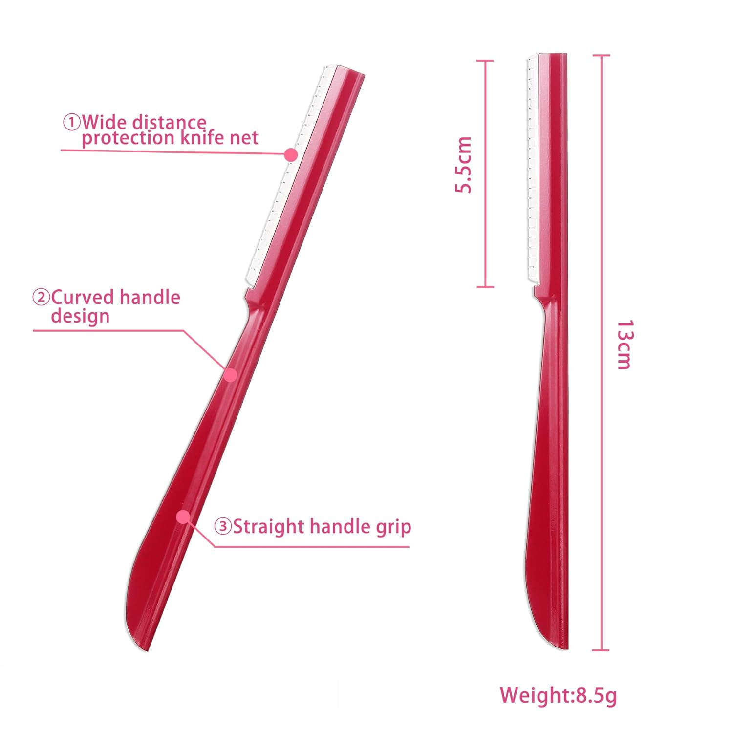 “Compact design, beautiful and practical, these eyebrow razors can help remove eyebrows, neck and facial fine hair and other unnecessary hair. Lightweight and non-slip handle, ergonomic design and easy to control precisely, it can provide a comfortable use experience. Designed for experienced men and women.