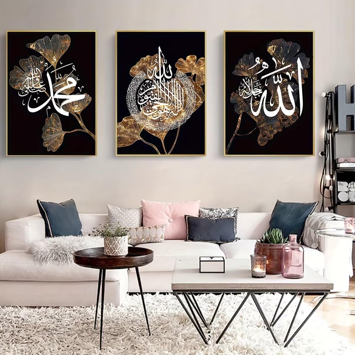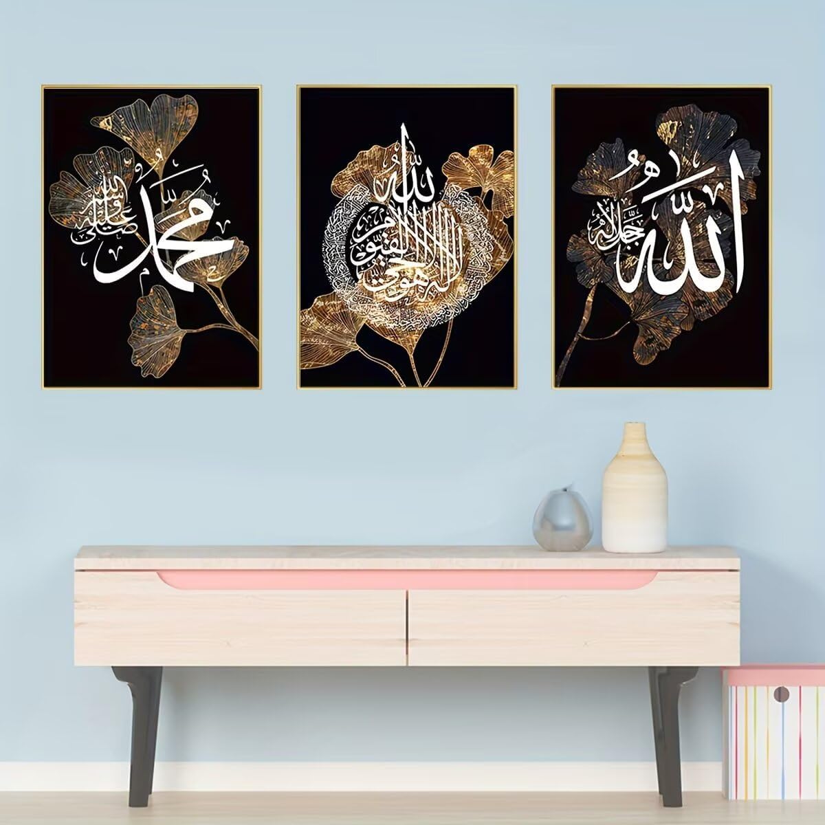 3 Pcs Islamic Calligraphy 8x12inch Wall Art Gift for Modern Home, Office, Living Room, Bedroom Decor, Unframed Canvas Poster Wall Art Gift