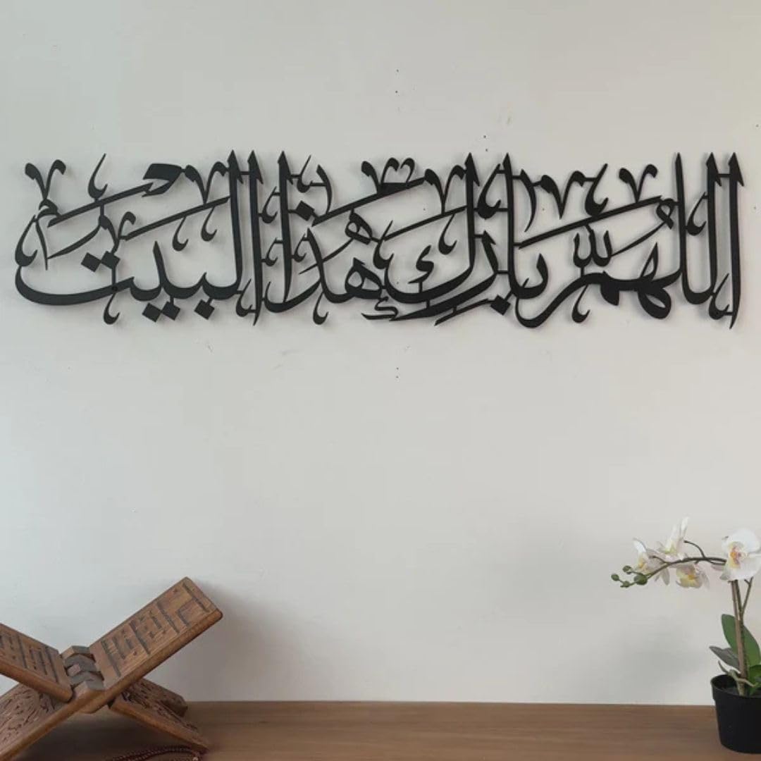 Blessed Islamic Wall Art – Features the meaningful Arabic dua “Allahumma Barik Hazal Bait” and “Iyyaka Na’budu Wa Iyyaka Nastaeen” in elegant calligraphy, symbolizing divine blessings and devotion.