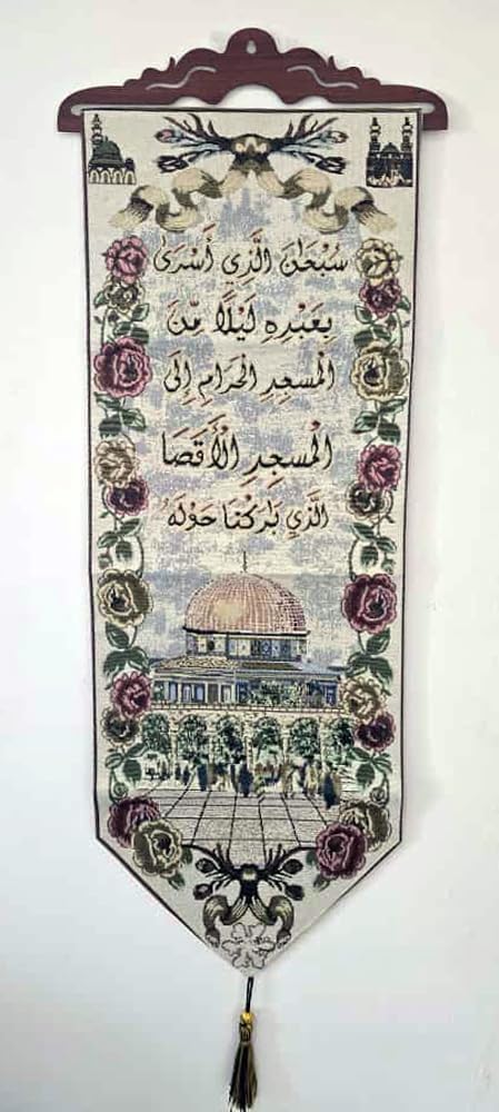 Ameen Wall Door Hanging Tapestry AMN-151 Al-Quran Arabic Calligraphy Woven Fabric Poster Islamic Art Decorative Ornament Muslim Gift – Size 30 x 90 cm. (subhan allathe Asra) Aqsa Mosque
