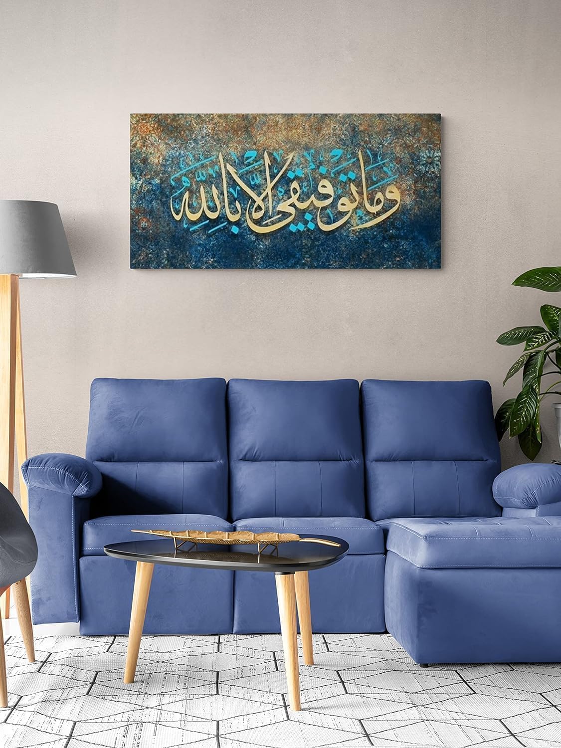 Bring a touch of elegance and faith into your home with this stunning ARS Large Islamic wall art. Featuring beautiful Arabic calligraphy from Surah Hud 1, this canvas print is a perfect Muslim home decoration. Measuring a generous 100×50 cm, this high-quality wall art is printed on premium canvas material for long-lasting durability and vibrant colors. This meaningful decor piece is an ideal way to enhance the spiritual ambiance of any room, making it a perfect gift for weddings, housewarmings, or special occasions. Add a touch of beauty and faith to your home with this elegant Islamic wall art.