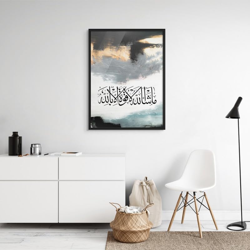 🎨 Exquisite Islamic Wall Art: Elegant Islamic wall art featuring “MashAllah La Hawla Wala Quwwata Illa Billah” in exquisite Arabic calligraphy. Perfect for adding a touch of spiritual beauty to any living space or office, and ideal for heartfelt gifting occasions.