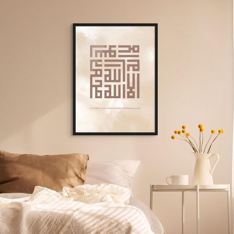 🎨 Exquisite Islamic Wall Art: Imbued with the profound Kalima Shahada in intricate Kufic calligraphy, harmonizing tradition with contemporary elegance. Ideal for enriching living rooms, bedrooms, or offices with cultural depth and artistic grace.
