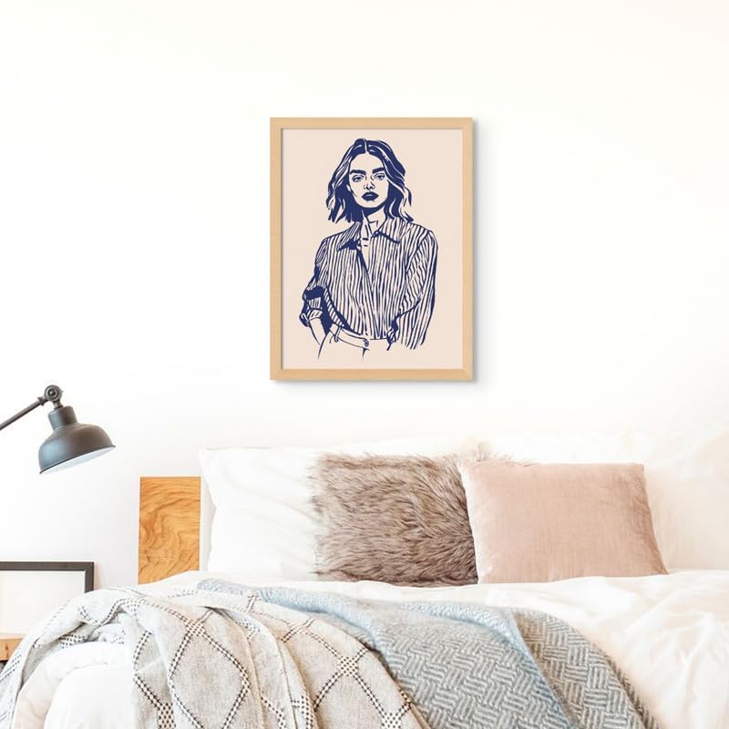 Art Decor Line Drawing Minimal Woman Portrait Modern Art Wall Art Framed Fine Art Wall Décor Art for Living Room Bedroom Home Office Gifting 60x80cm
