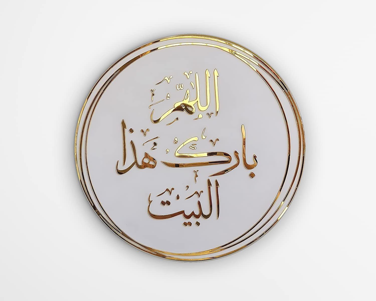 BPA Acrylic white&gold Wall Art Decor I Ramadan Decoration Calligraphy I Arabic Quote for Home I Housewarming Marriage Wedding Bridal Newborn Eid Gift Ideas I 35 cm diameter, a perfect addition to your event decor. Crafted from high-quality materials, this product ensures durability and longevity. Its elegant design enhances any setting, making it ideal for both personal and professional use. Whether for everyday use or special occasions, this product combines style and functionality effortlessly. Easy to maintain and versatile, it is a must-have for creating a sophisticated ambiance.