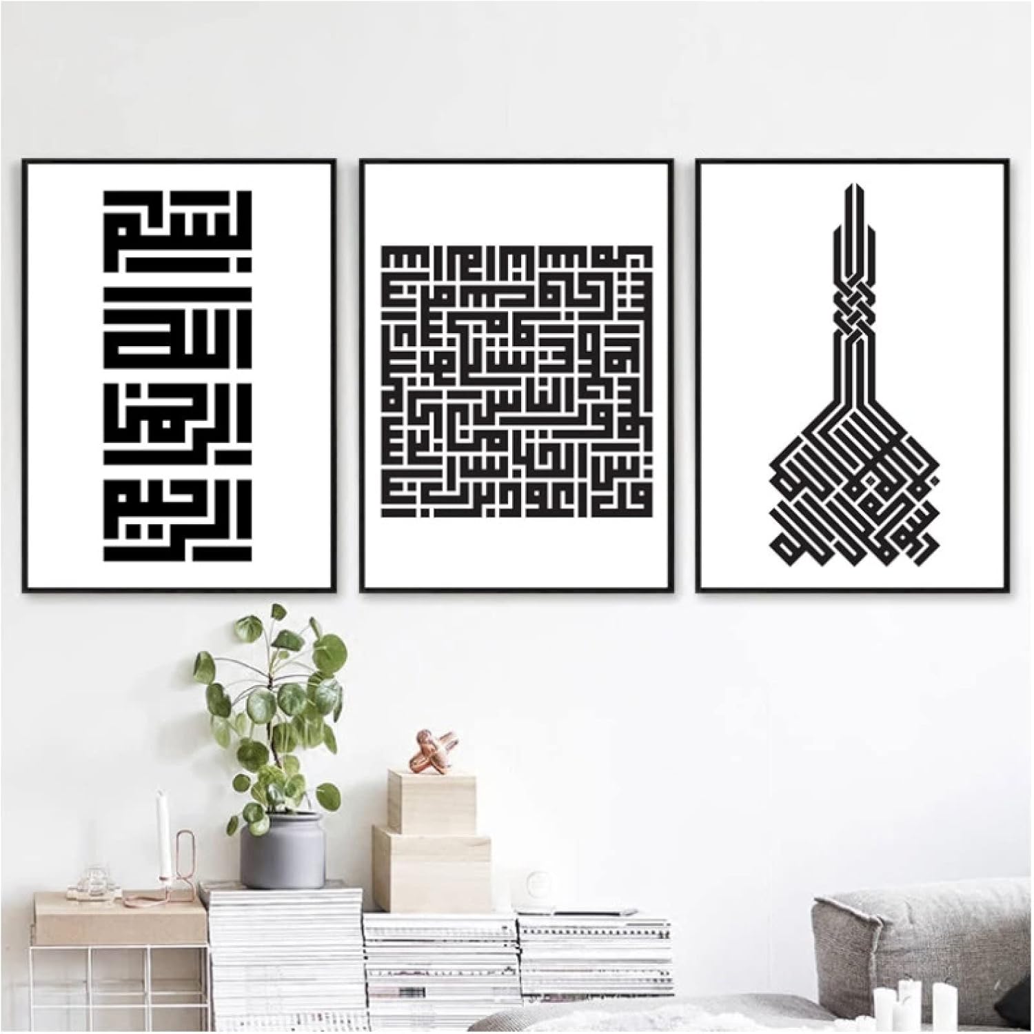 bpa Arabic Calligraphy Quran Verse Islamic Black White Canvas Paintings Poster Print Wall Art Pictures For Living Room Home Wall Decor 50X70Cm/3Pcs Framed