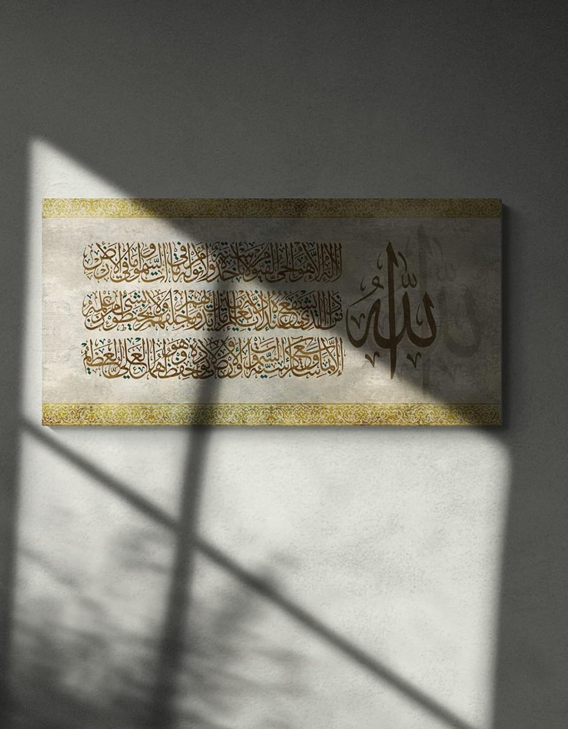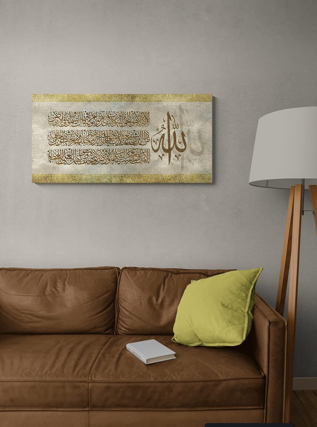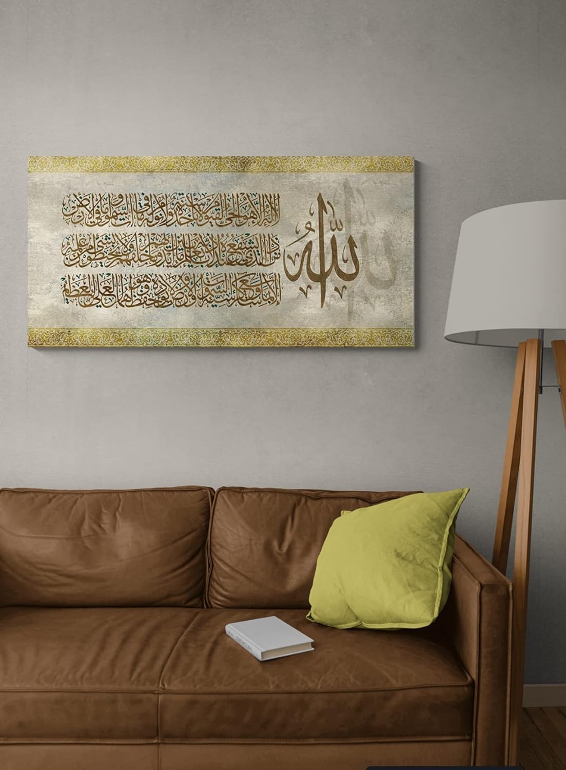 BPA® Ayatul Kursi, Large Islamic Wall Art, Islamic Canvas Print, Muslim Home Decoration, Quran Wall Art, Arabic Calligraphy, Muslim Wedding Gift (Ayatul Kursi 2, (120x60cm) 47×23,6 inches)