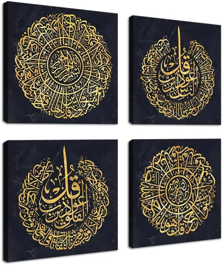 BPA Islamic Canvas Wall Art for Living Room Modern Arabic Calligraphy Decor Home Muslim Painting Prints Artwork Religious Framed Poster Pictures Ready to Hang(16”W x 16”H 4)