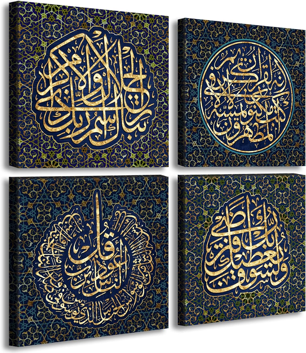 DJSYLIFE Islamic Art Wall Decor Arabic Calligraphy Art Decorative Black Muslim Paintings Prints Religious Quran Artwork Decorations 12″ W x 12″ H 4 Pieces