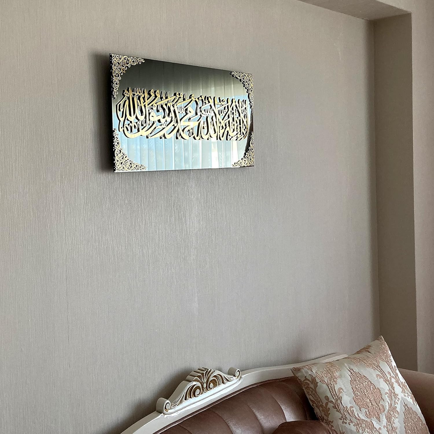 This Shahada Wall Frame is more than decoration – it’s a daily reminder of faith, peace, and purpose. Let this 3D Islamic wall art become a central spiritual and artistic element in your home or gift it to someone special. ✨ Meaning & Importance of the First Kalma The First Kalma (Shahada) is the basic declaration of faith in Islam: “لا إله إلا الله محمد رسول الله” which translates to: “There is no god but Allah, Muhammad is the Messenger of Allah.” This sacred phrase is a core tenant of the Muslim faith. Having it beautifully displayed in your home serves not only as decoration, but as a constant reminder of faith, devotion, and spiritual grounding. 🌟 Design & Craftsmanship 3D Raised Calligraphy — The acrylic letters stand out against the background, creating a three-dimensional visual effect. Framed Format — The artwork arrives already framed, so you don’t need an extra frame or mounting. Material Quality — Made from thick, high-grade acrylic with strong backing to ensure stability and durability. Protective Finish — A protective film (to be removed after installation) keeps the surface pristine during shipping. 🏡 Placement Tips & Use Prayer Room — As a focal point above the prayer area or mihrab. Living Room / Hallway — Complements existing décor while infusing spiritual elegance. Entrance / Foyer — Welcomes guests with a peaceful and dignified Islamic message. Office / Study — Adds a subtle spiritual reminder to your workspace. 🛠 Installation & Care Use nails or screws suitable for your wall type; the frame has built-in hanging hardware. Clean with a soft, dry microfiber cloth. Do not use water, alcohol, or harsh sprays which can damage the acrylic. Remove the protective film just before hanging to avoid fingerprints or dust sticking.