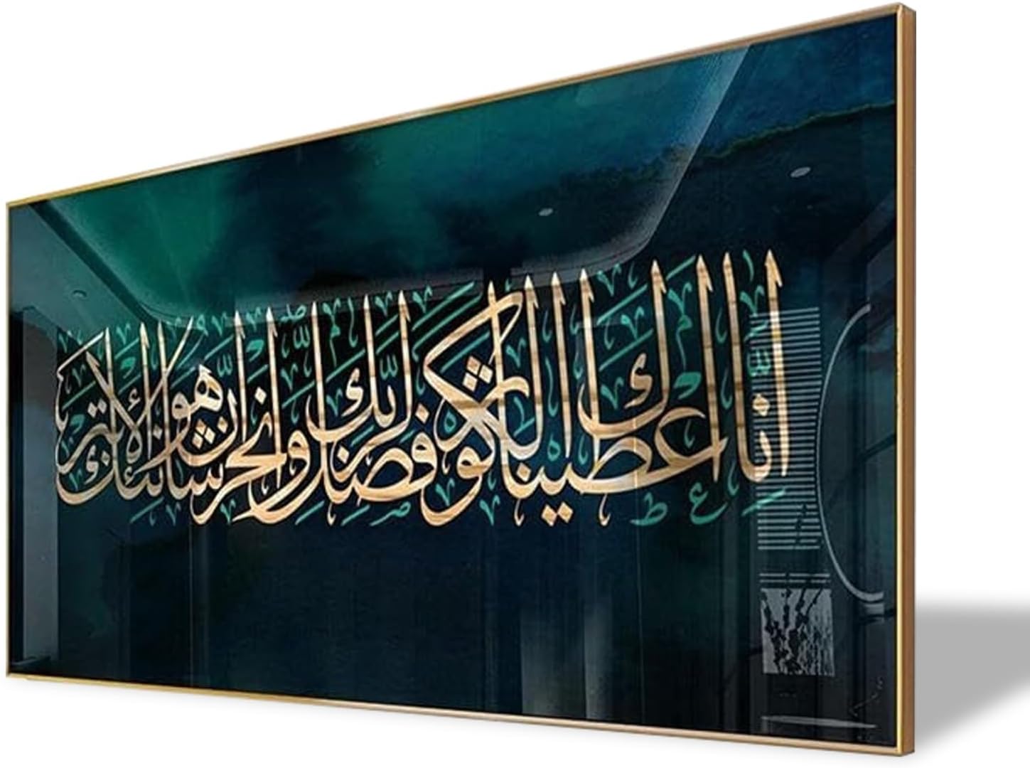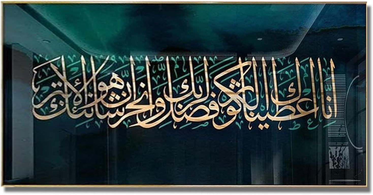 ✨ Premium Islamic Calligraphy Wall Art – Elegant & Modern Bring elegance, spirituality, and modern style into your home with this luxury Islamic calligraphy canvas. Designed with rich teal tones and stunning gold Arabic lettering, this artwork creates a peaceful and sophisticated atmosphere in any space.