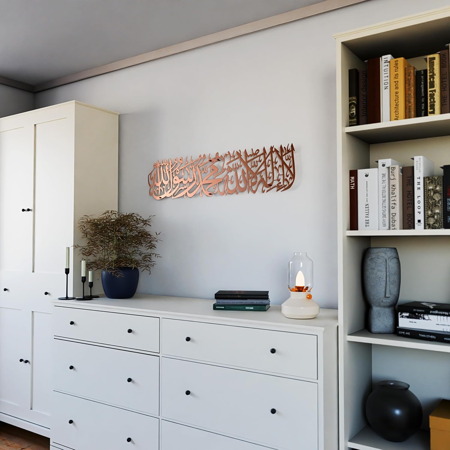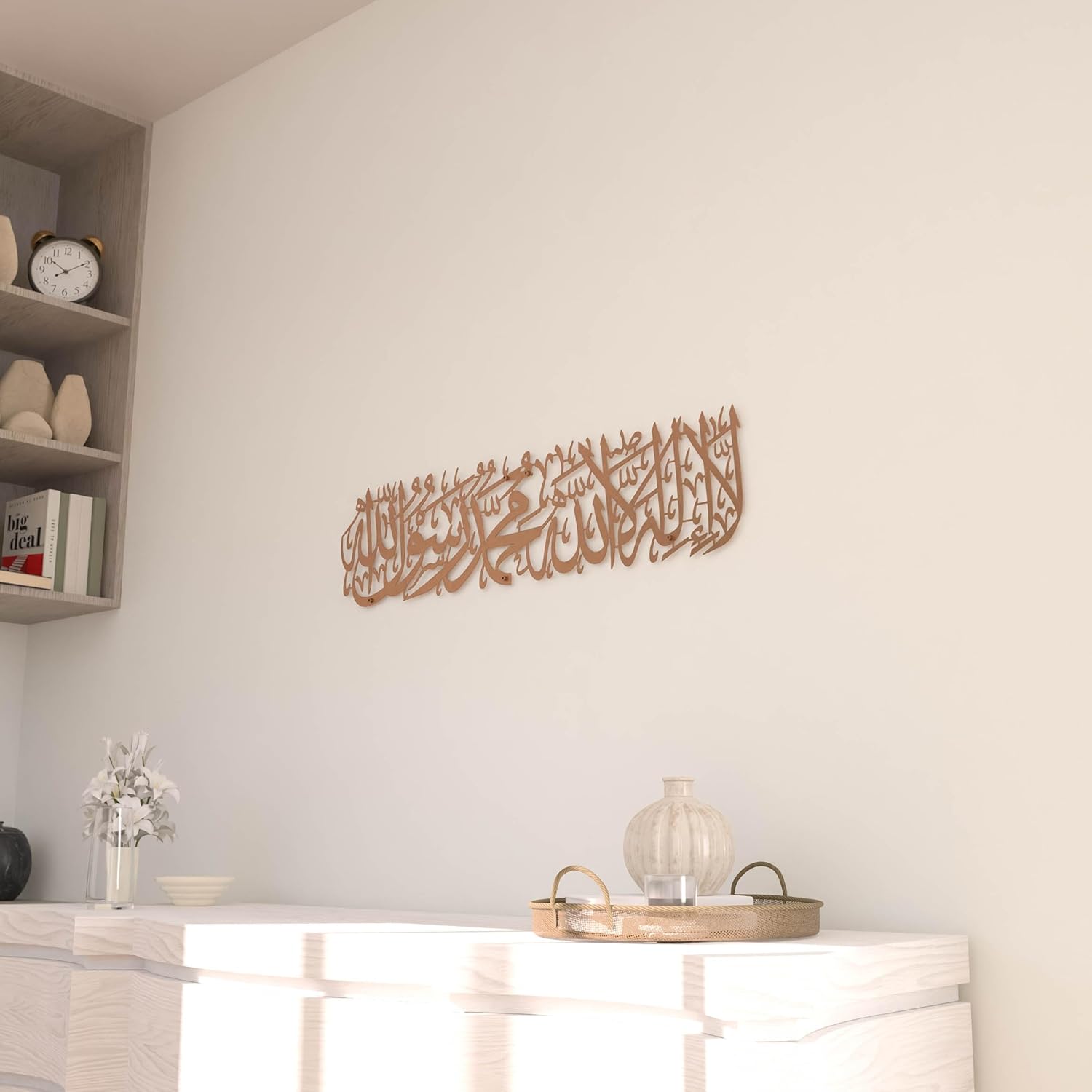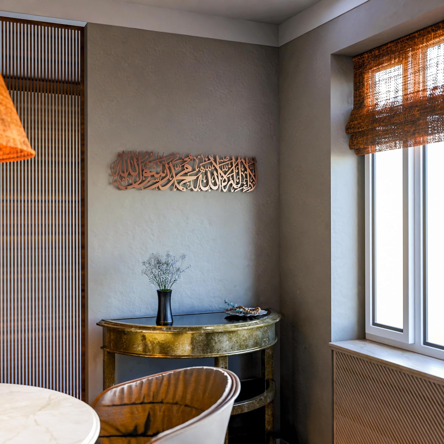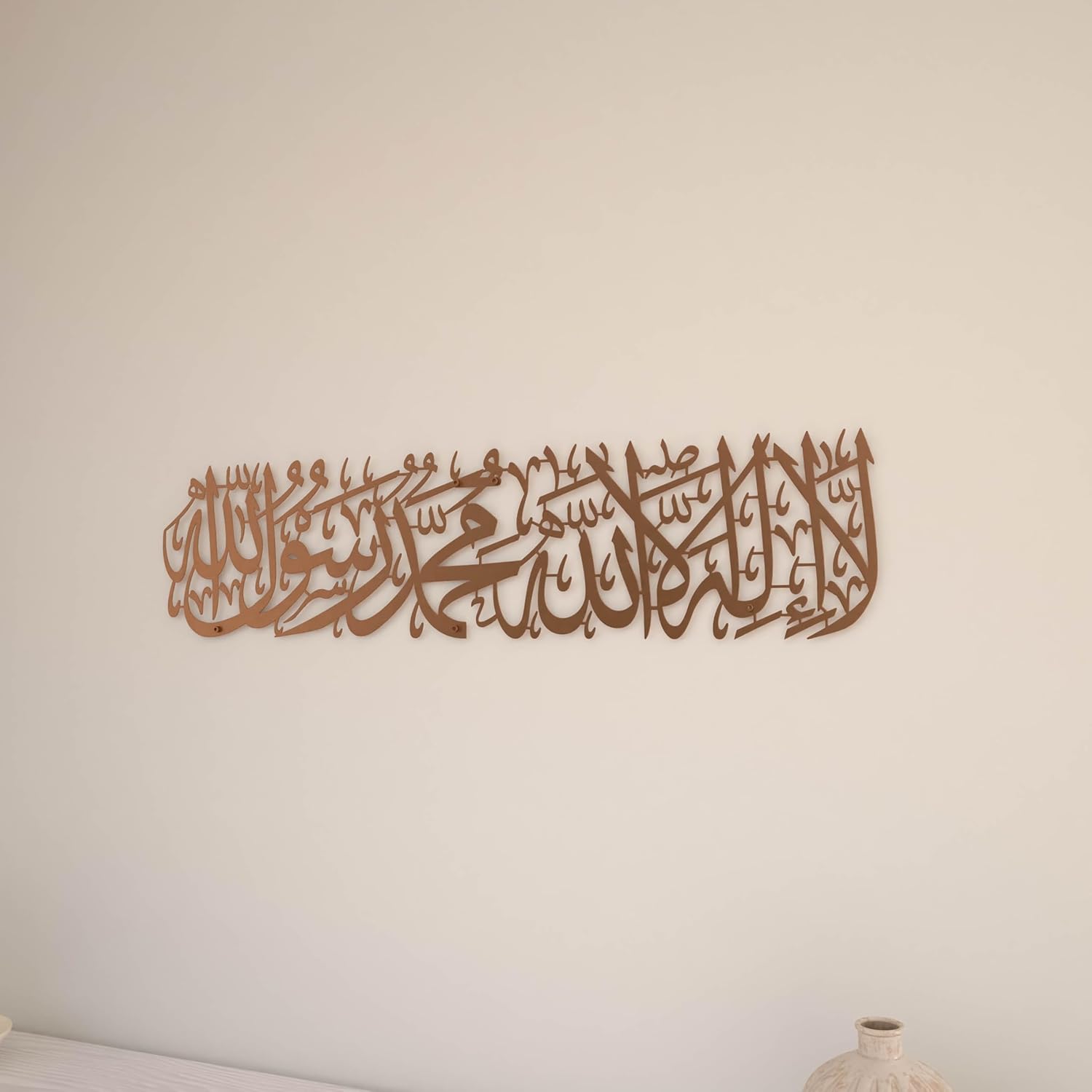 iwa concept First Kalima Metal Islamic Wall Art, La Ilaha Illallah Mohammad Rasulallah Arabic Calligprahy Decor, Quran Decor Islamic Gift for Muslims in Ramadan Eid and Hajj Mubarak (Large, Copper)