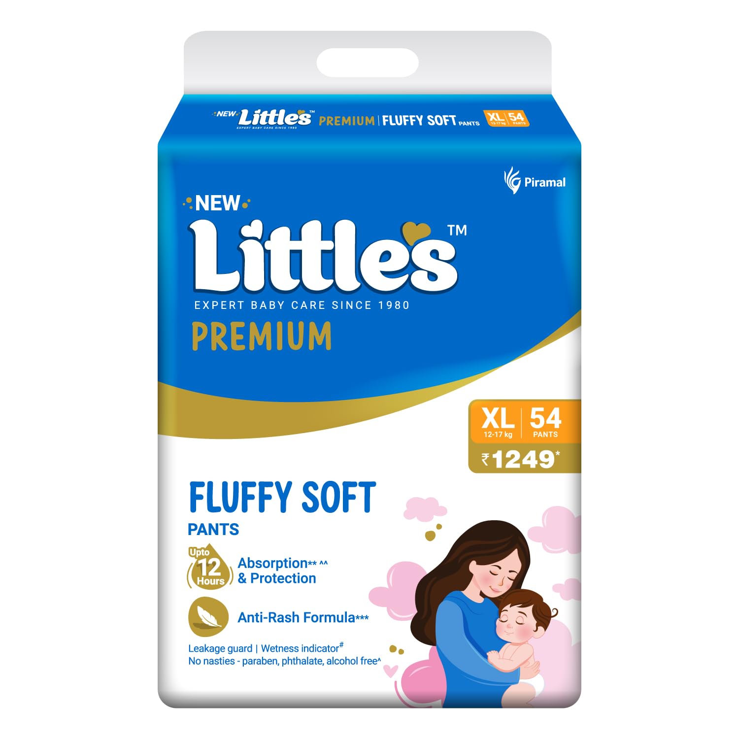 Little’s Premium Baby Diapers XL Size (Extra Large) Pants Style | 12-17 kg | 54 Count | Super Jumbo FluffySoft Baby Diaper with Leakage Guard, Wetness Indicator & 12 Hours Absorption