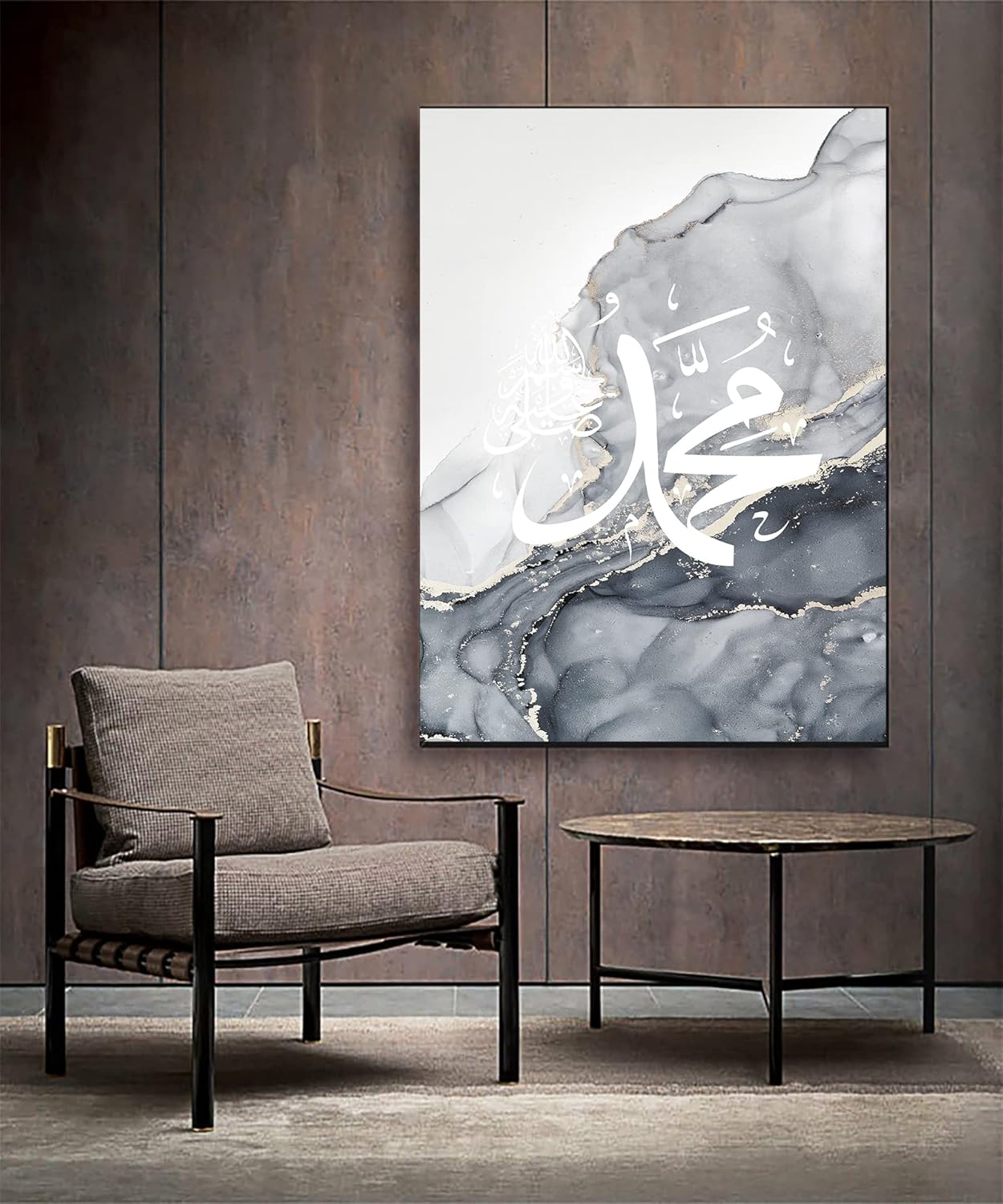 Islamic Arabic Calligraphy Canvas Painting, Silver Marble Background Allah Islamic Quotes Poster Canvas Painting Pictures Decoration, No Frame