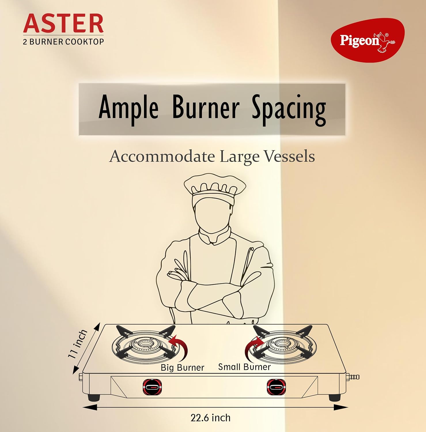 Anti-Skid Feet for easy operations, Aster Gas Stove 2 burner is compatible with LPG only. For conversion to PNG compatibility ,please contact Brand Authorized Service Partner.