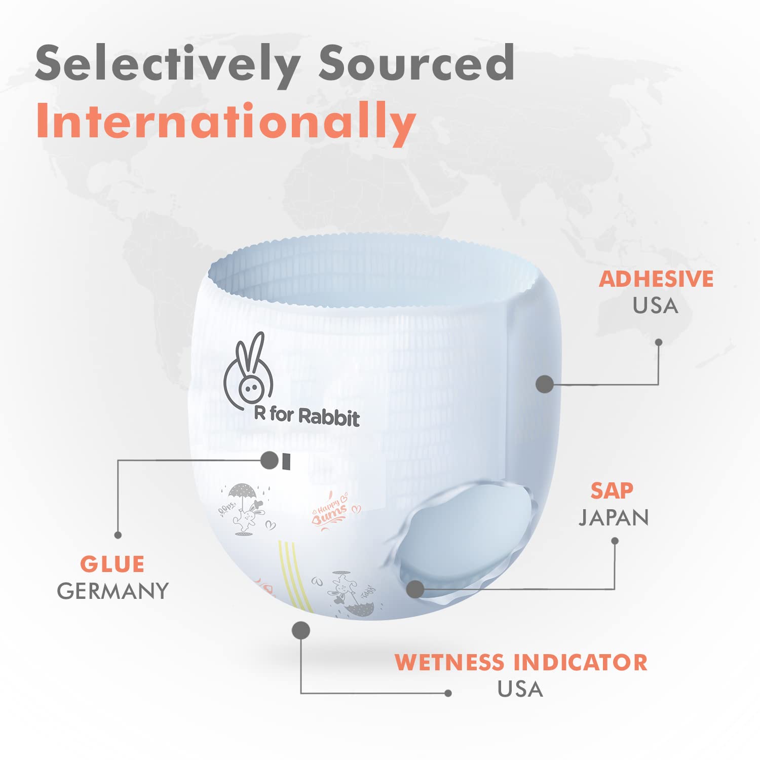 Breathable Diaper of Medium Size: R for Rabbit Feather Diapers for M size having 10 Million* Breathable pores which allows the air to easily pass through, making the diapers highly breathable and acting as a rash guard for your baby by instantly locking moisture in.