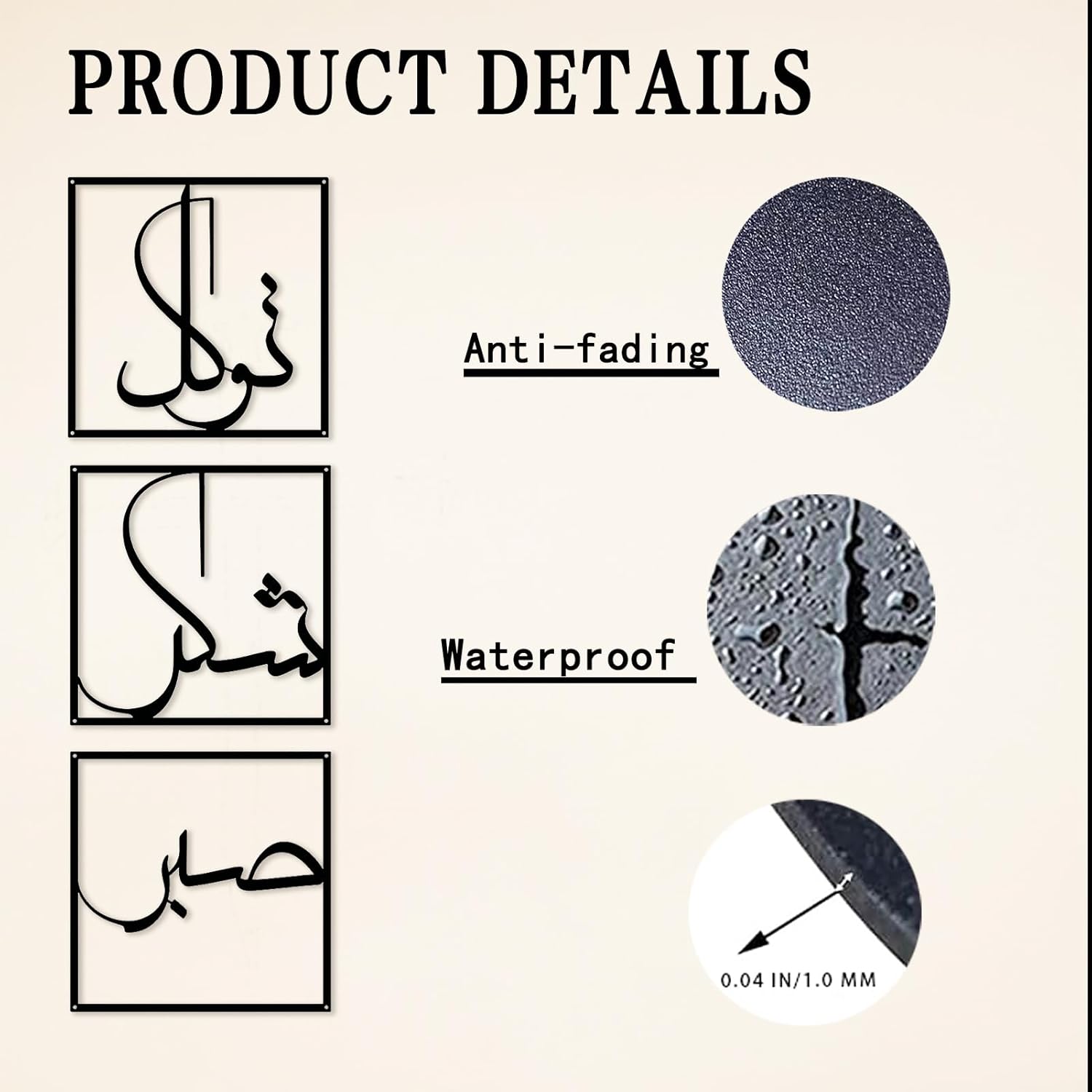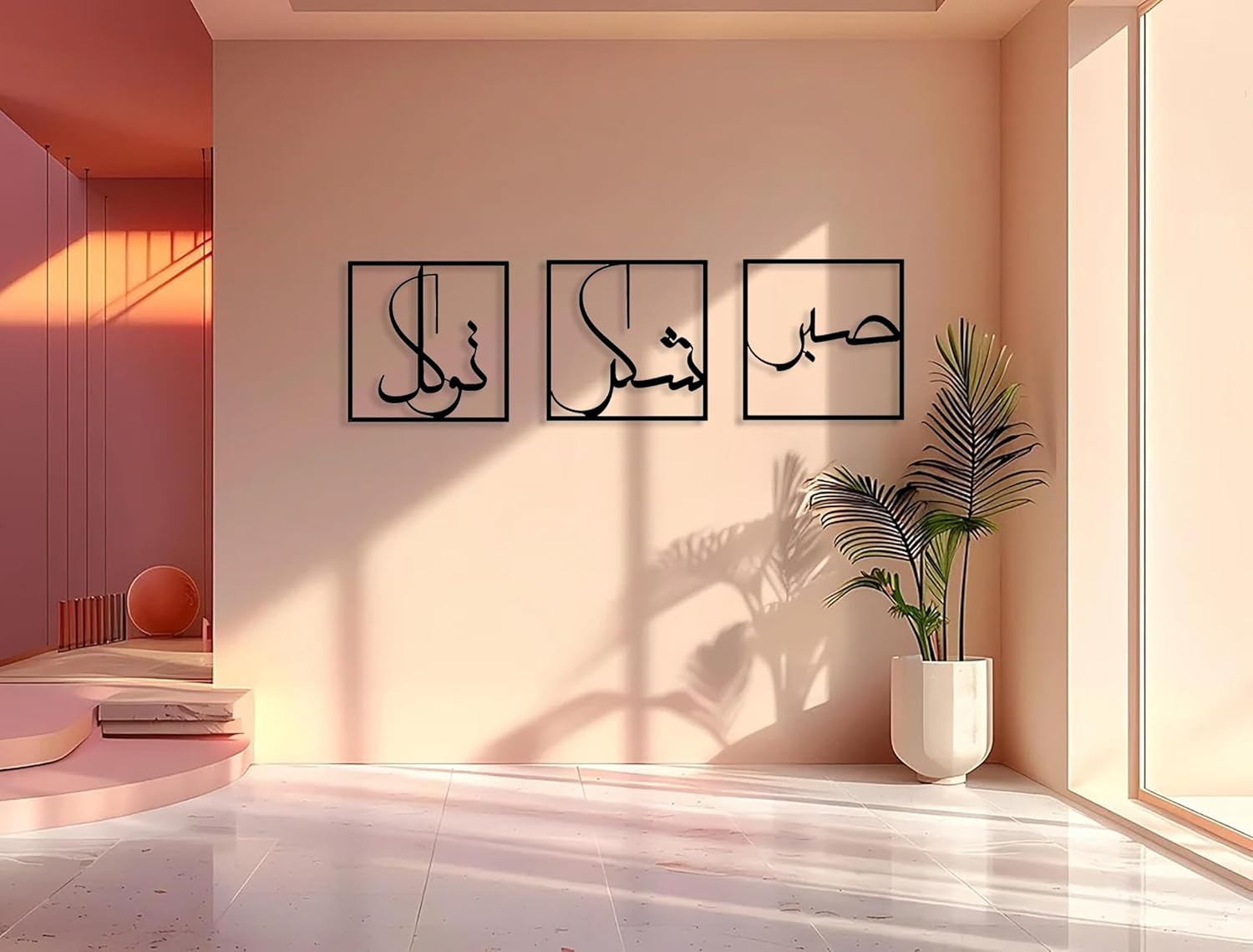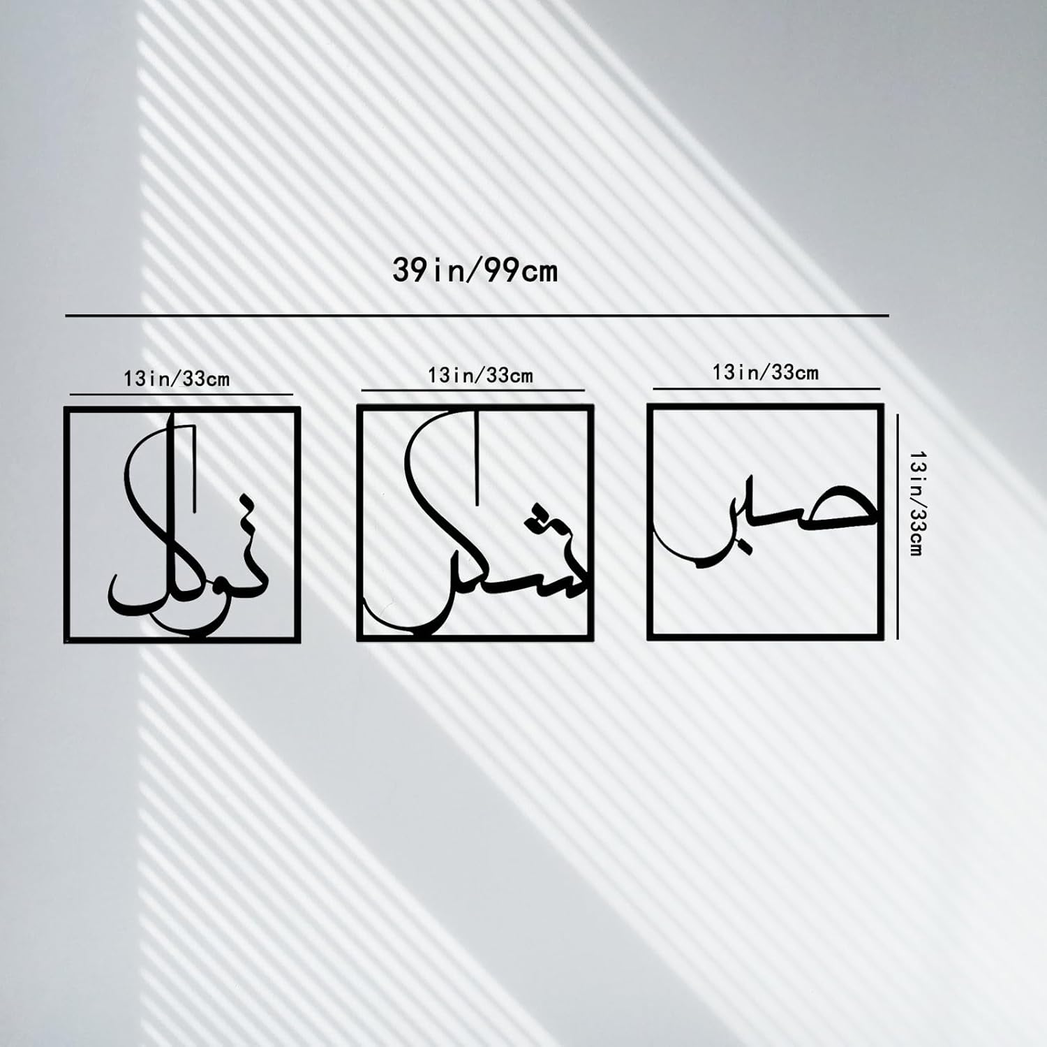 ISLAMIC HOME DECOR: this metal wall decor is an exquisite choice for those seeking to infuse their living spaces with a blend of art and spirituality. With its elegant design, durable construction, and profound Islamic quotes promoting sabr、 shukr、 and tawakkal、 it is bound to leave a lasting impression on all who behold it.