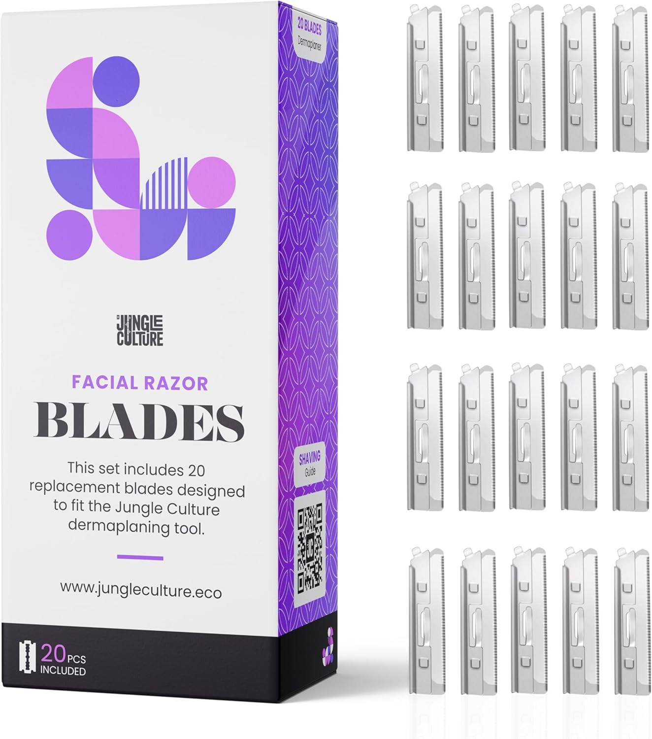 Set of 20 Replacement Blades for Jungle Culture Dermaplaning Razors – Facial Razor Refills for Eyebrow Shaping, Precision Exfoliation & Hair Removal for Radiant, Smooth Skin