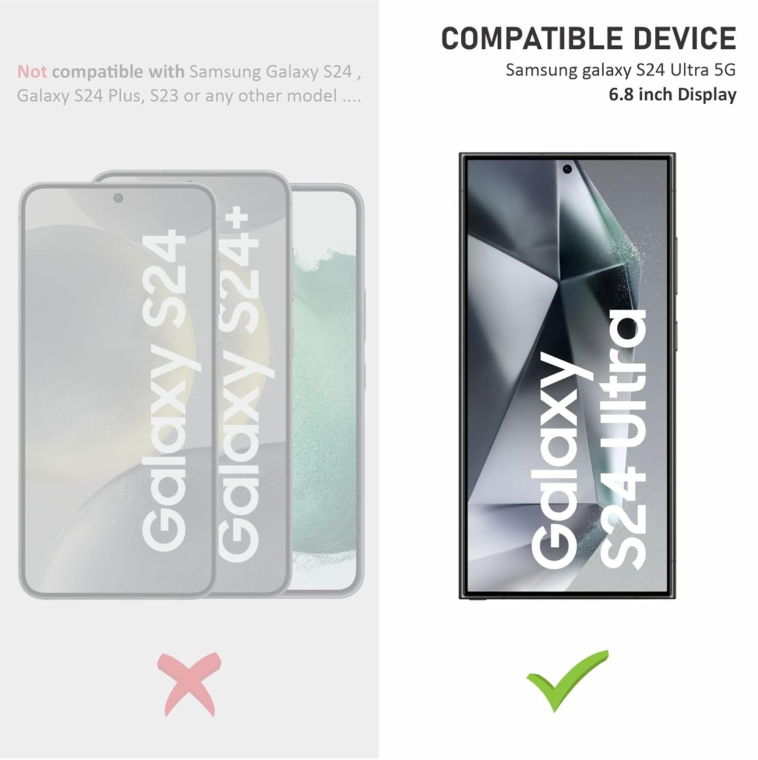 Compatible Device: This Tempered Glass is Perfectly compatible with Samsung Galaxy S24 Ultra (6.8 Inch). Easy Installation: This is a edge to edge screen protector, Bubble free adhesive and easy to install. You can follow installation guidelines which printed on Installation guide. Box Includes: Tempered Glass, Wet wipe, Dry Wipes, Dust absorber sticker with installation guidelines.