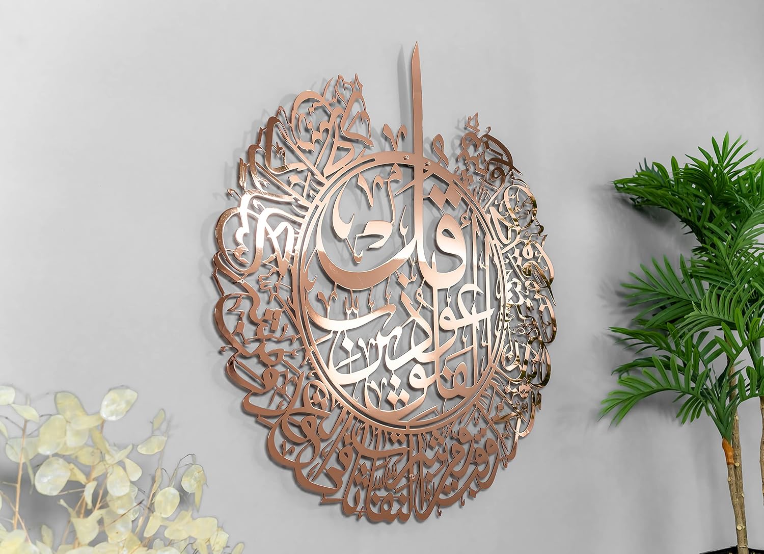 YOBESHO Large Metal Al Falaq and Al Nas, Islamic Wall Art, Arabic Calligraphy, Muslim Gifts, Quran Art, Home Decor, Eid Ramadan Gift (Copper Falaq and Nas)
