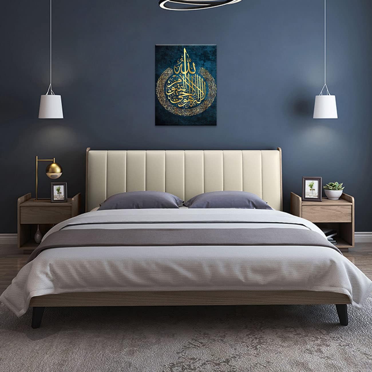 4.Religious Wall Decor: 1 panel Muslim Islamic Calligraphy canvas print painting is very suitable for hanging in your home, living room, bedroom, kitchen, apartment, office, hotel, dining room, bathroom, bar, etc.