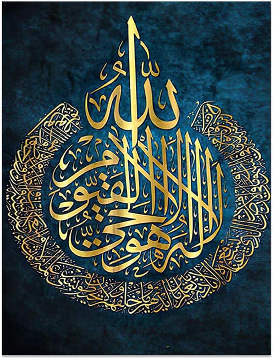 ZHONGYUTONG Islamic Wall Art Arabic Calligraphy Posters Muslim Quran Painting Canvas Print Ayatul Kursi Pictures Religious Artwork Living Room Bedroom Office Wall Decor (16”x24” (40x60cm), Unframe)