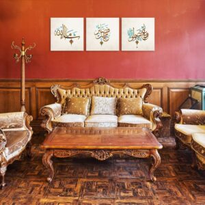 LZIMU Islamic Canvas Wall Art 3 Pieces Ayatul Kursi Allah Name Muhammad Picture Prints Arabic Calligraphy Muslim Art Poster for Home Decor Ready to Hang (Islamic Wall Art-1, 11″x14″x3P (28x35cmx3))