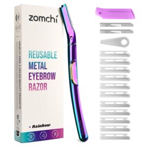 ZOMCHI Dermaplane Razor for Women Face, Premium Facial Razor & Eyebrow Razor, Dermaplaning Tool with Metal Handle, Removes Peach Fuzz, Exfoliates Skin, 11 Blades (Rainbow)