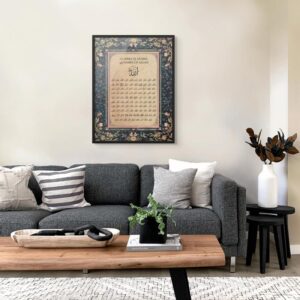 Art Decor Framed 99 Names of Allah Islamic Fine Art Arabic Calligraphy Wall Décor for Living Room Bedroom Dining Room Office Gifting 30x40cm