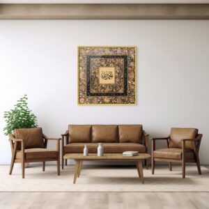 Art Decor Framed Islamic Wall Art of Allah Fine Art Arabic Calligraphy Wall Décor for Living Room Bedroom Dining Room Office Gifting 60x60cm